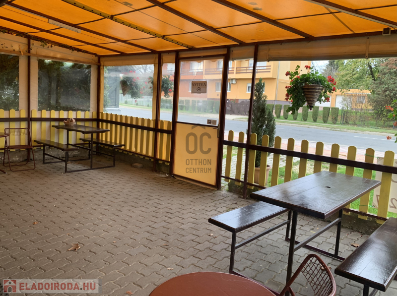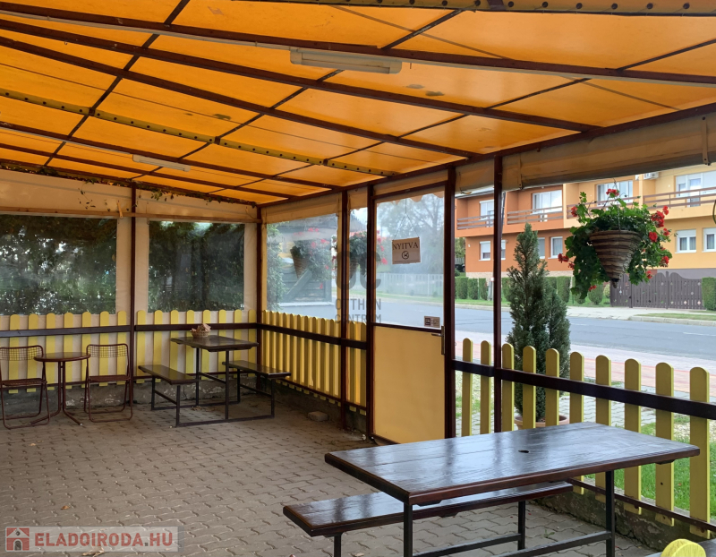 Az épület kialakítása nagyon jó, vendégek részére fedett terasz van kialakítva, az üzletbe belépve a kiszolgáló helyiségbe lépünk, innét jutunk el az előkészítőbe, hátsó részben a dolgozóknak kialakított öltöző, vizes blokk és tároló található, a vendégek pedig az udvarról tudják a vizes blokkot megközelíteni.