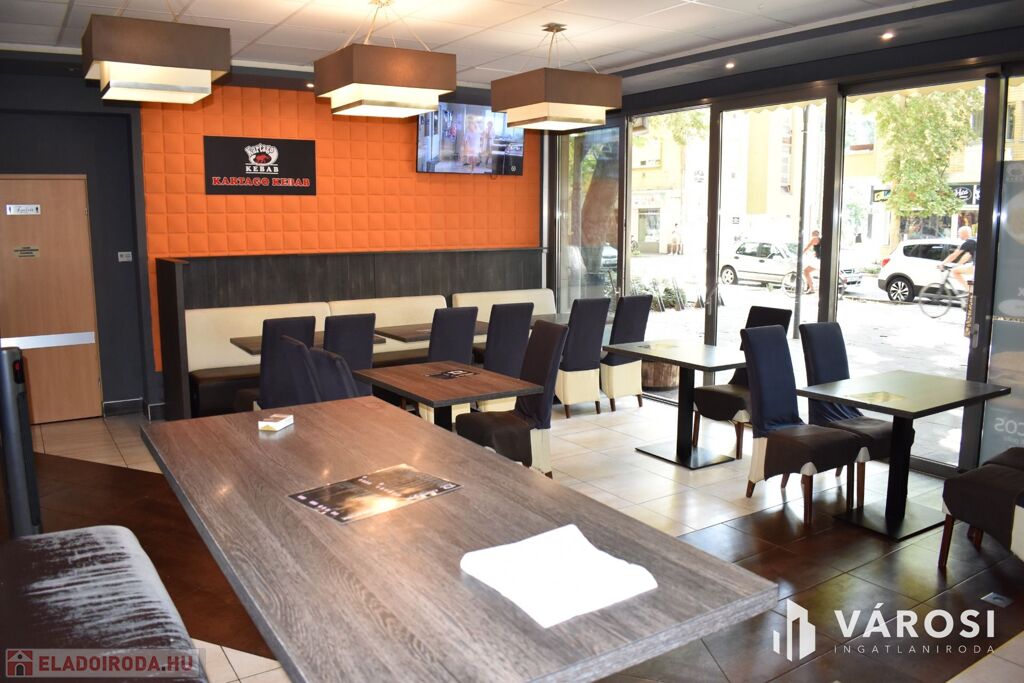 Eladásra kínálom Békéscsaba város belvárosi részén a Csaba Center szomszédságában található 1980-as években épült és 2015-ben teljesen felújított, tégla falazatú, 139 m2-es üzlethelységet. Az üzlethelység jelenleg étteremként van üzemeltetve, amelyhez egy 86 m2-es hangulatos terasz is tartozik. A felújítások során a teljes elektromos hálózat fejlesztése ( 3x50 A, ipari áram), a hidegburkolatok, a nyílászárók cseréje is megtörtént a legmodernebb fotocellás, alumínium nyílászárókra. Az üzletben továbbá ki lett alakítva egy mai kornak megfelelő, elegáns vizes blokk (férfi, női WC) is. Az üzlet kialakítása is kiváló, mivel a sétáló utcáról mindössze egy üvegfal választja el a 18 m2-es kiszolgáló részt és a közel 52 m2-es vendéglátó részt. Ezen egységek mögött lett kialakítva egy jól felszerelt 26 m2-es konyha, személyzeti öltöző, fürdőszoba, raktárhelységek, előkészítő és hűtők. Az üzlet fűtéséről egy Westend gázkazán és padlófűtés gondoskodik.