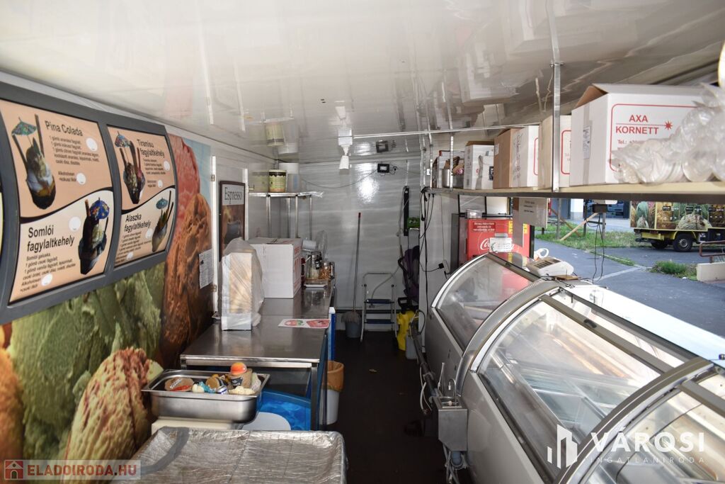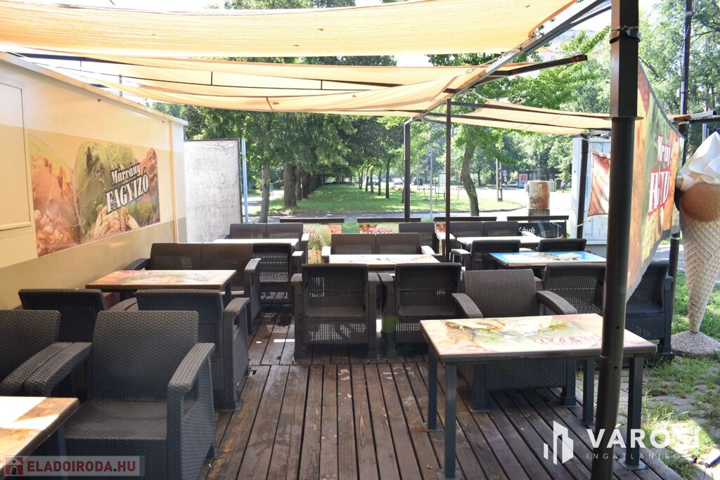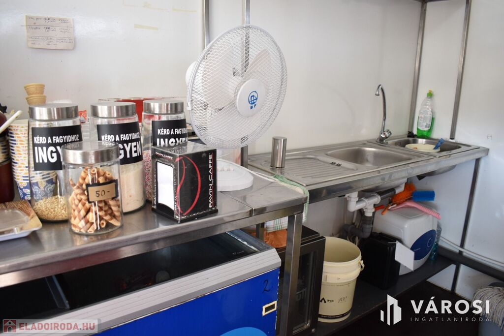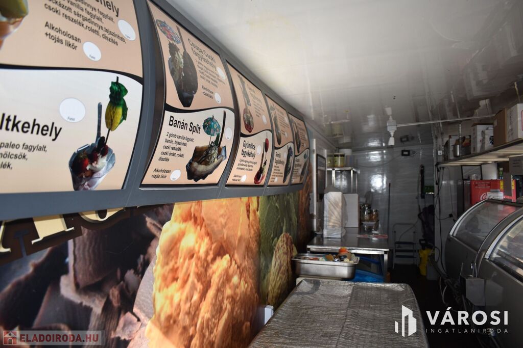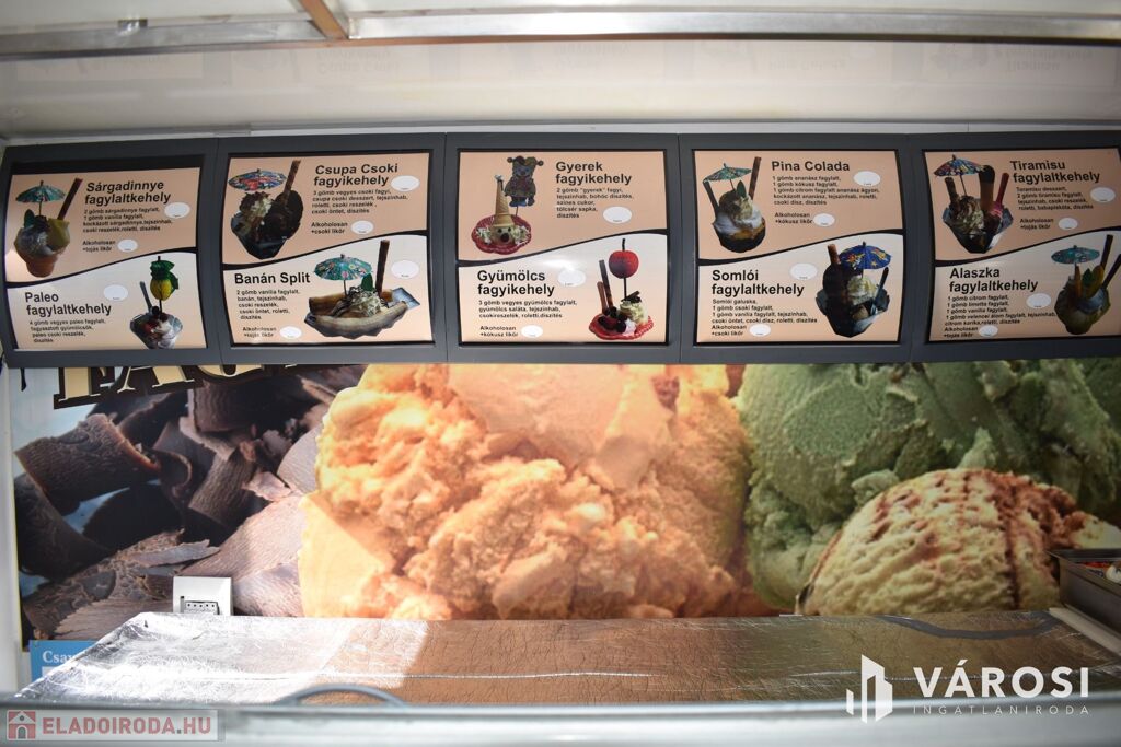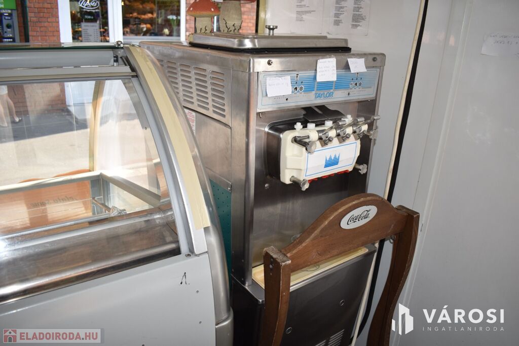 A vételár tartalmazza a fagylaltozóban lévő összes gépet, hűtőt, kerti garnitúrát és felszerelést.