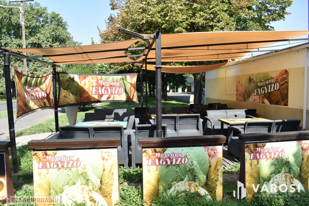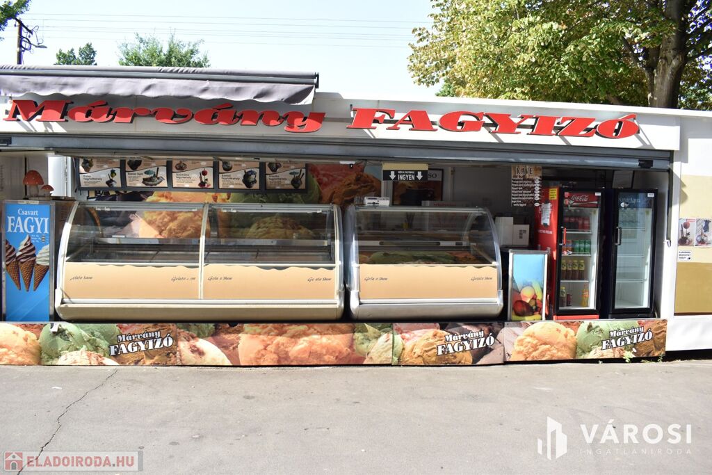 Eladásra kínálom Békéscsaba város Lencsési lakótelep részén ezt a 30 m2-es üzlethelységet. Az üzlethelység évek óta és jelenleg is fagylaltozóként van üzemeltetve. A Békéscsabai emberek nagyon szeretik, mivel tudják, hogy a Márvány cukrászdák a minőséget képviselik. A fagylaltozóhoz tartozik továbbá egy 20 m2-es iroda és raktárhelység is, amely a mellette lévő lépcsőház földszinti részén található. Az üzlethez tartozik továbbá egy 82 m2-es hangulatos terasz rész is, amely akár rendezvények lebonyolítására is kiválóan alkalmas. Az üzlet teljes elektromos hálózat fejlesztése ( 3x32 A ). A fagylaltozó mellett szinte minden megtalálható és a környéken lakók nagyon szeretik.