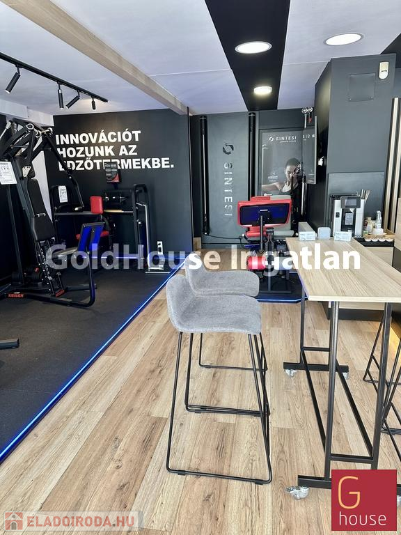 Az alsó szinten egy tágas, közel 50 m²-es, világos üzlettér található, amelyhez közvetlenül kapcsolódik egy elegáns kialakítású mellékhelyiség.