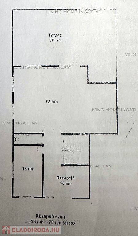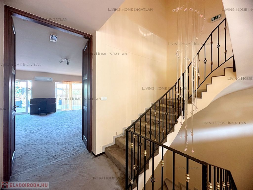 Földszint: A 120 nm-es földszinten található egy teraszkapcsolatos nappali/tárgyaló, fogadópult az előtérben, mellékhelyiség, gépészeti helyiség, kisebb iroda/szoba.