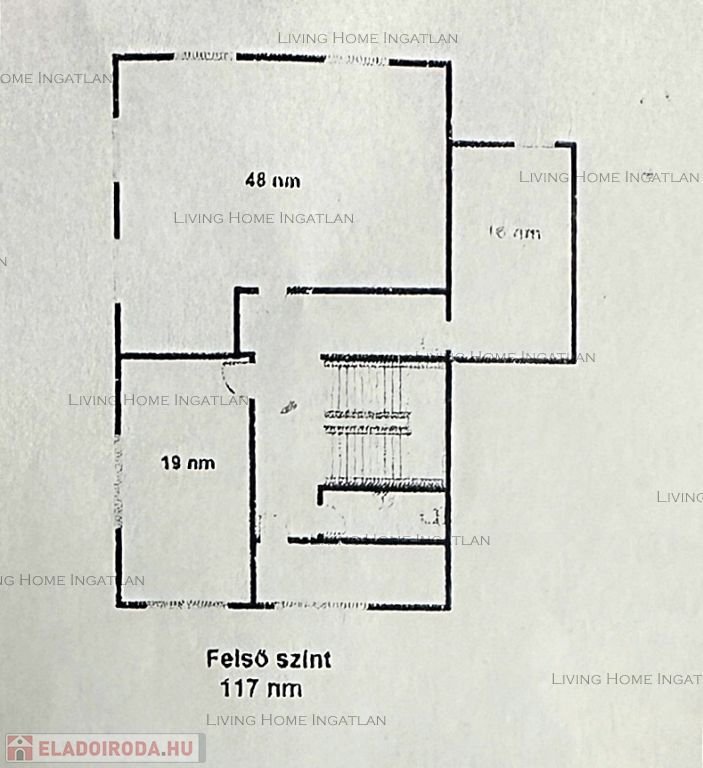 Emelet: Erre a 111 nm-es szintre tágas, nagy belmagasságú csigalépcsőn juthatunk fel Itt található egy konyha, étkező, nagy nappali, hálószoba, WC.