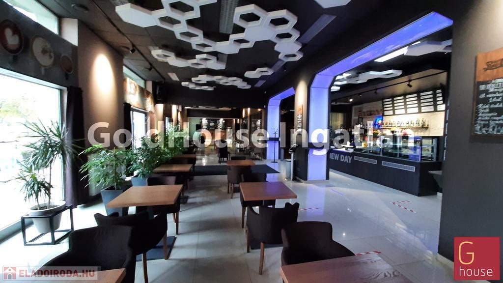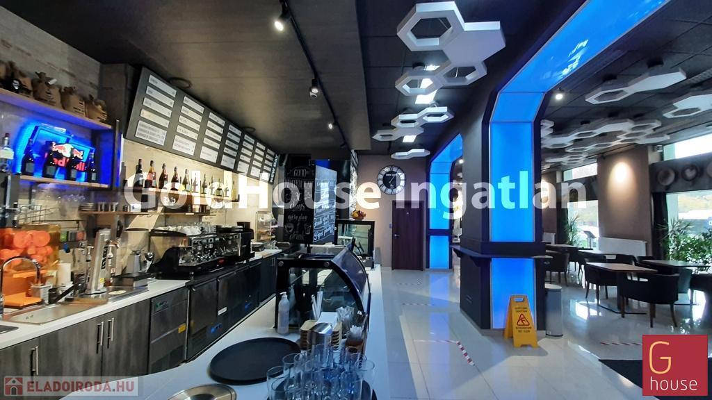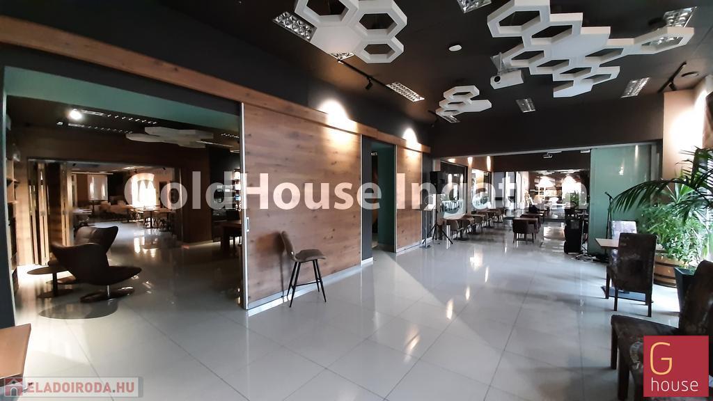 Bemutatóterem, cégközpont, rendezvényterem, étterem, áruház, autószalon vagy akár szépségszalon, orvosi központ létesítésére kiváló! Nívós kereskedőháznak, ruha és egyéb márkaboltnak, közért -delikátesz üzletnek is alkalmas. Jelenleg a fele terület exkluzív kávézó-rendezvényterem, de eltérő tevékenység esetén a bárpult könnyen elbontható. Befektetésnek is kiváló!
