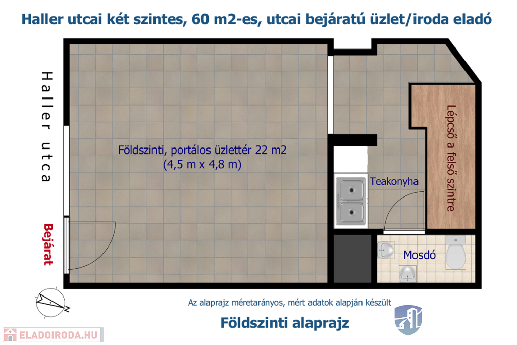 ÉPÍTSE FEL ÁLMAI ÜZLETÉT a Dunától egy kőhajításnyira, egy olyan helyen, ahol a dinamikus városi élet és a hivatali forgatag találkozik. **Bemutatjuk ezt a Haller utcában található, két szintes, utcai bejáratú, összesen 60 m²-es ingatlant, amely IDEÁLIS VÁLASZTÁS LEHET ÜZLETNEK, IRODÁNAK, ÉTTEREMNEK, sőt, amelyben KOMBINÁLT ÜZLET ÉS LAKHATÁS IS MEGVALÓSÍTHATÓ.