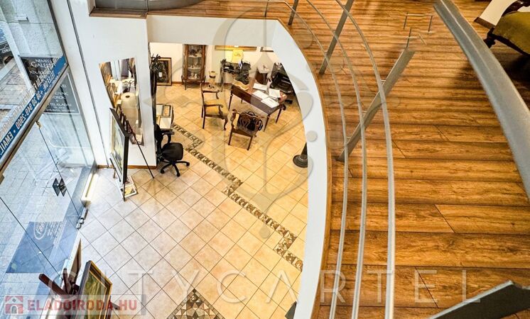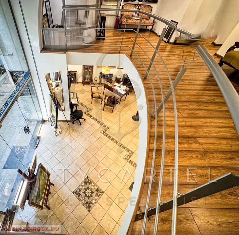 Az üzlet teljes belmagassága 630 cm, ami óriásivá varázsolja a teret. A galériázott rész alatt 263 a fenti üzletrész pedig 232 cm magas, ahol található egy külön leválasztott irodahelyiség. A belső berendezés nem tartozéka az üzlethelyiségnek, azok akár vétel esetén 24 óra alatt elszállításra kerülnek.