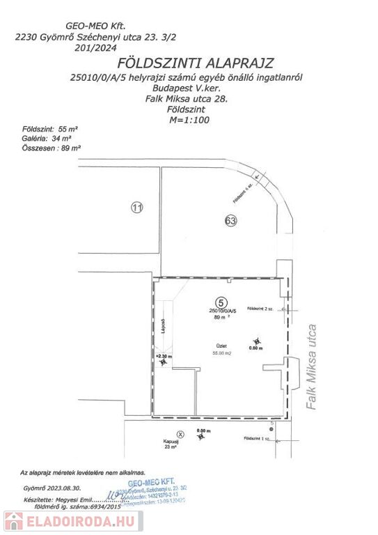 * Földszint 55 m2: ; belmagasság: 5.50 m