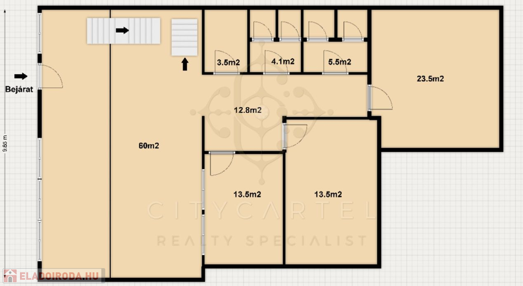 Földszint: 131 nm – 4 helyiség, fogadótér, 4 toalett