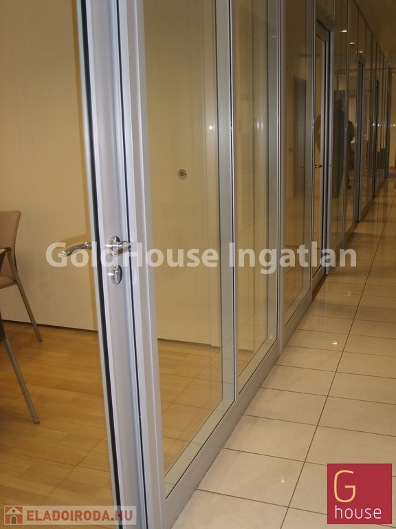 -az utcaszintes 200 nm-t mobilüvegfalas irodák alkotják, recepció és tárgyaló is van.