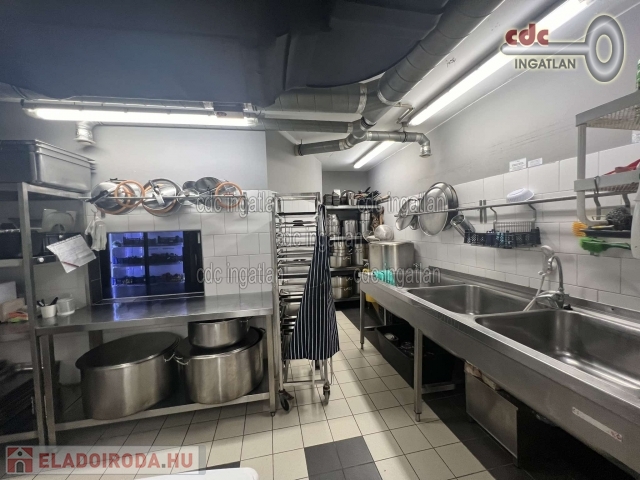 EGYEDI LEHETŐSÉG! TERMELŐKONYHA ÉS ÉTTEREM TULAJDONJOGA ELADÓ! VII. kerületben kínáljuk megvételre ezt a földszinti, utcai nézetű, üvegportálos, 214 m2-es, két szintes, 2 bejáratos, cirkófűtéses, világos, 2017-ben teljes körűen felújított üzlethelyiséget. Az ingatlan 2 szintes, szintenként 107 m2-es, vasbeton szerkezetű monolit vendégfödémmel lett létrehozva. A földszint 1000 adagos termelőkonyha és kiszolgáló helyiségei. Az emelet klimatizált, kb. 40 fős étterem, iroda, gépház. Ipari áram 3x50A, ipari gáz 16 m3-es gázóra és külön vízóra, HikVison kamerarendszer, riasztórendszer. A szagelszívást 6 m2 elszívóernyő biztosítja, a tető fölé kivezetett elszívó rendszerrel, légtechnikai rendszerrel az emeleti gépházban. Fűthető is a levegő. A légtechnika az ár részét képezi. Az étteremben lévő ingóságok, eszközök és berendezések, konyhai felszerelés igény esetén külön megállapodással megvásárolhatók. Az ingatlan értékesítése fordított ÁFÁ-val könnyedén kivitelezhető. Irányár: 189.900.000 Ft.