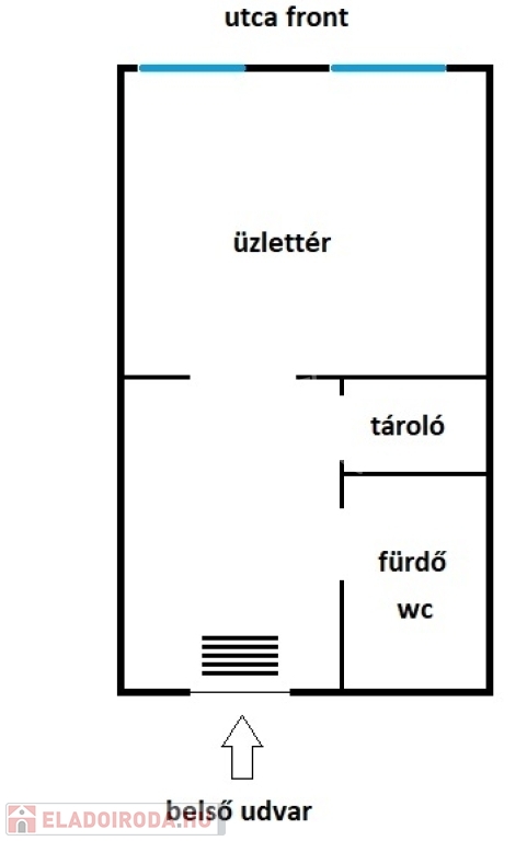 Az ingatlan jelenleg udvari bejárattal rendelkezik, azonban utcai bejárat könnyedén kialakítható, így üzleti szempontból kiemelten kedvező lehetőség. Az elrendezése jól alakítható, bármilyen kisebb kereskedelmi, szolgáltató vagy irodai tevékenységre alkalmas.