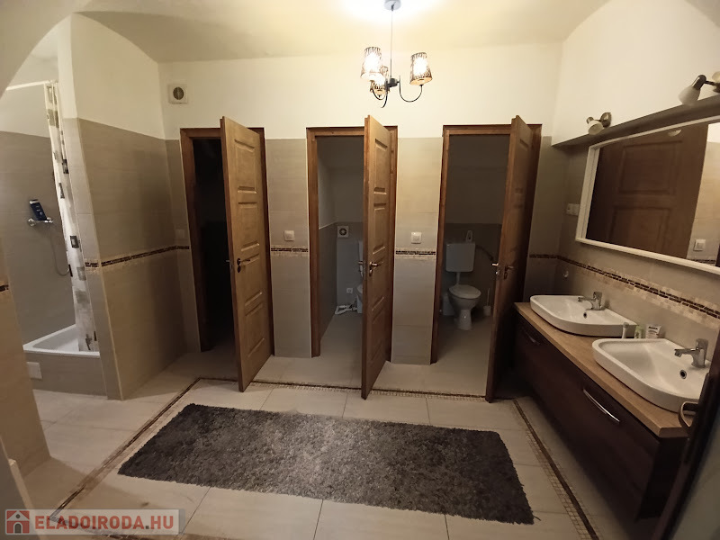 Mosdóhelyiség két külön bejáratú WC-vel és két zuhanyzóval