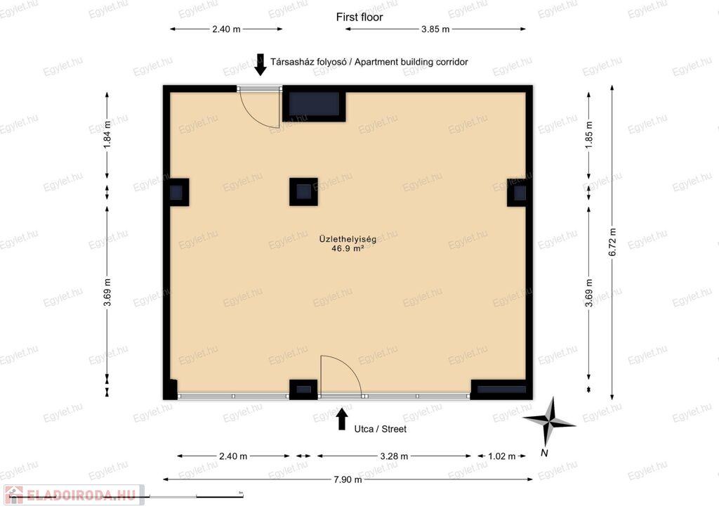 - bejárattal az utca és a társasház folyosója felől is,