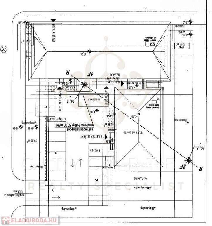 Az ingatlannak két bejárata van: elöl személy, hátul az udvarra teher- és személygépkocsi bejárat.