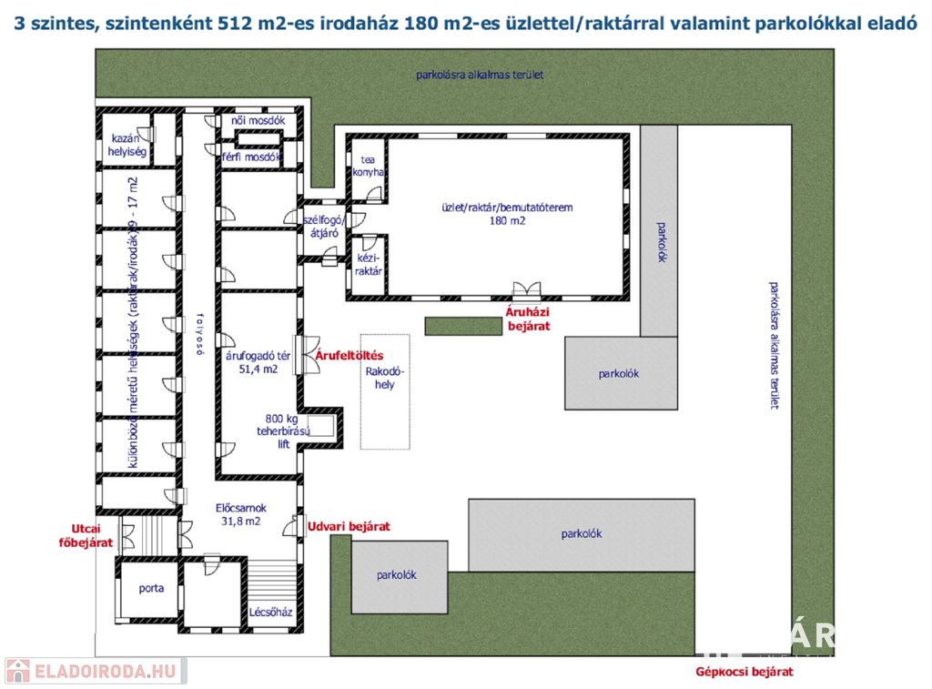 3 SZINTES, SZINTENKÉNT 512 M2-ES IRODAHÁZ 180 M2-ES ÜZLETTEL/RAKTÁRRAL VALAMINT PARKOLÓKKAL – STRATÉGIAI HELYEN ELADÓ