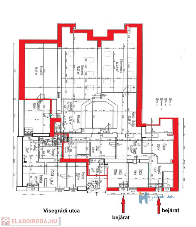 XIII.ker Újlipótvárosban, a Visegrádi utcában 462 m2-es sokhelyiséges ÜZLETHELYISÉG eladó.