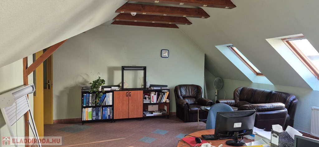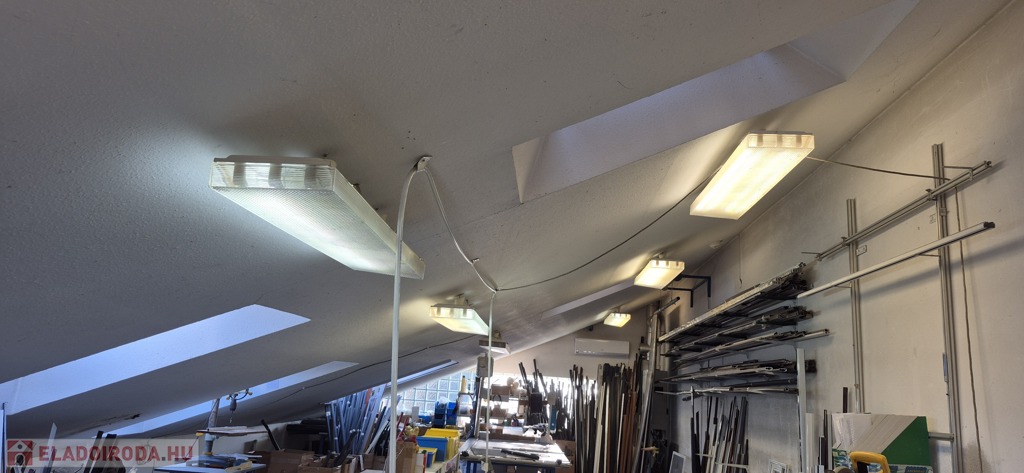 A földszinten tágas, 50 m²-es eladótér található, irodahelyiségekkel, raktárral, valamint egy 114 m²-es, világos, sokablakos üzemi résszel, két udvari bejárattal. Innen lépcső vezet a tetőtérbe, ahol szintén 114 m²-es üzemi terület, továbbá tárgyaló, iroda, ebédlő és fürdőszoba kapott helyet. A tetőtéri irodaszintről külön lépcső vezet vissza az eladótérbe, így a belső közlekedés rugalmasan használható.