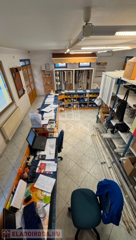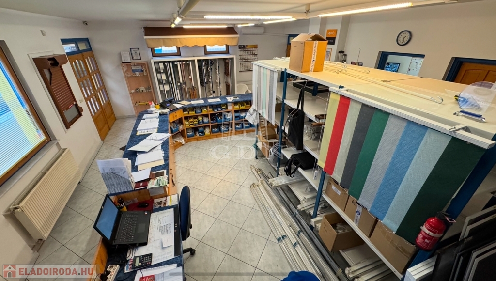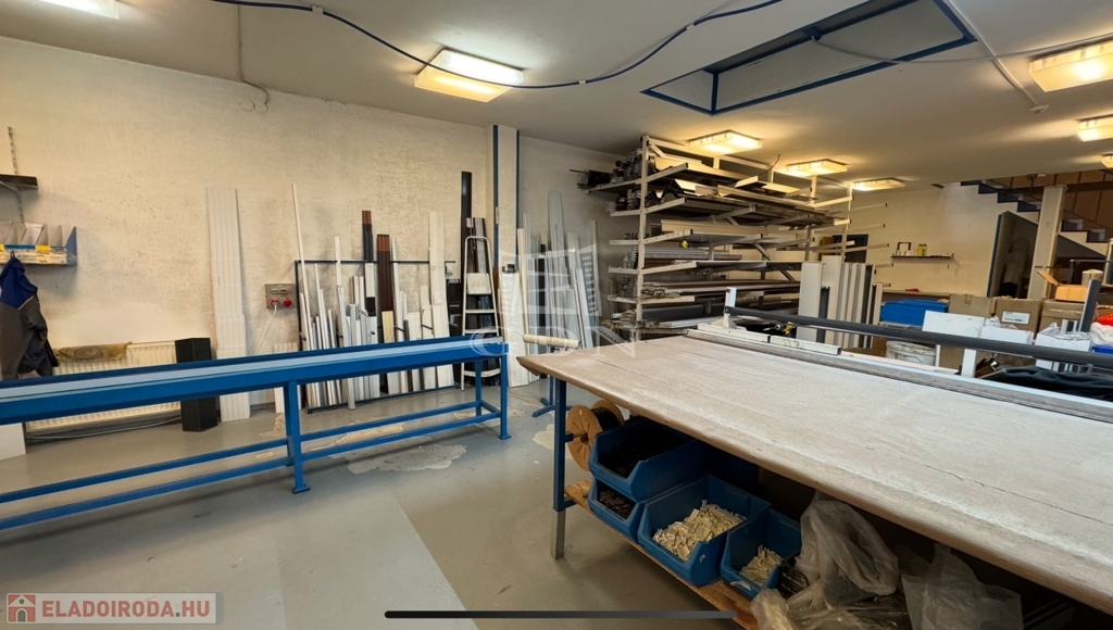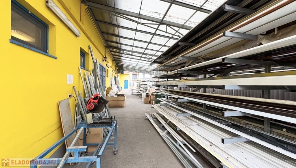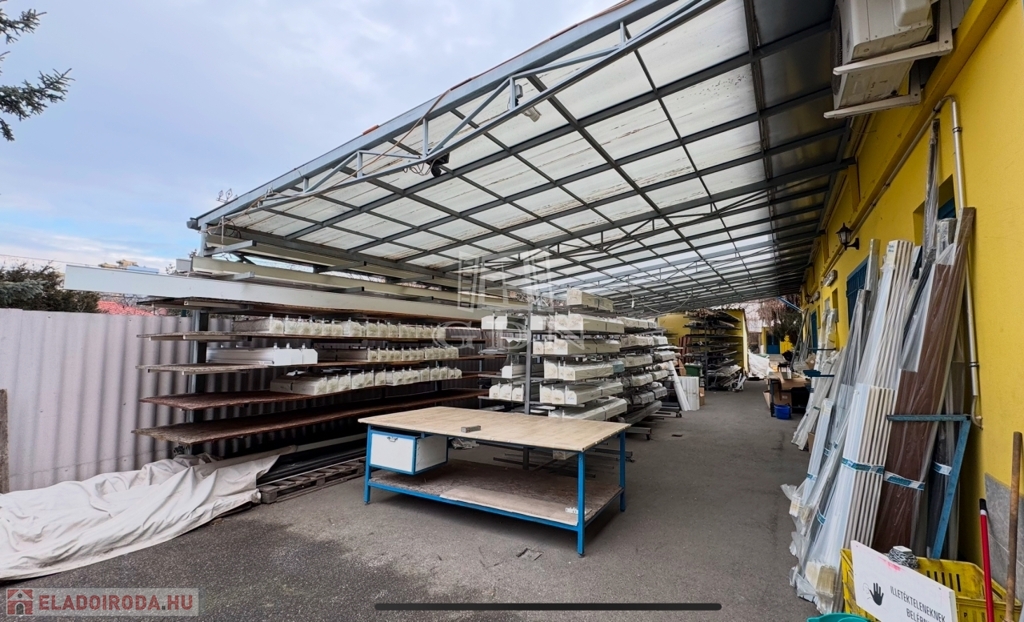 • Épület: Az utcafronti, földszintes épület oldalhatáron helyezkedik el, jelenleg árnyékolástechnikai vállalkozás működik benne. Az udvar hátsó része (körülbelül a telek fele) acélszerkezetű, polikarbonát héjalású tetővel fedett, amely ideális raktározási célokra.