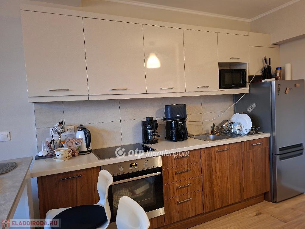 A lakás ami teljesen újszerű és minden igény kielégít, egy zárt, elektromos kapuval ellátott telken található és tartozik hozzá egy kocsibeálló.