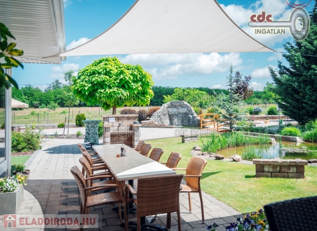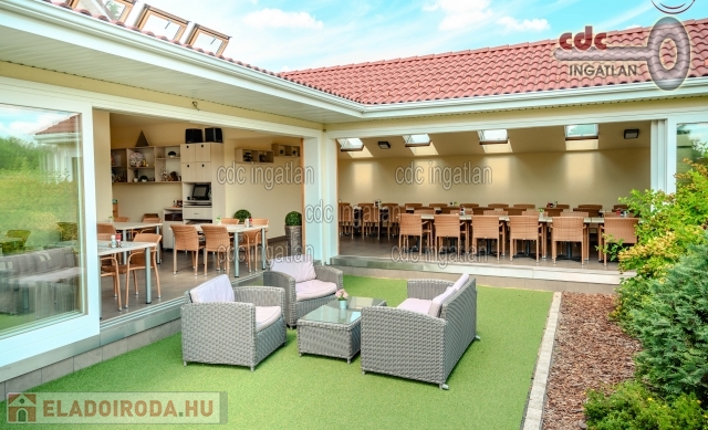 KÜLÖNLEGES ADOTTSÁGÚ ÉTTEREM, FREKVENTÁLT HELYEN, VARÁZSLATOS KÖRNYEZETBEN, HALASTÓVAL, JÁTSZÓTÉRREL ELEADÓ! XVI. kerületben, Cinkotán kínálom megvételre ezt a 2013-ban épült, 3000 m2-es telken lévő, 2 szintes, 305 m2-es + 87 m2-es tetőtér (ami jelenleg raktár, de igény esetén könnyen lakássá alakítható), padlófűtéses, klimatizált, DNY-i fekvésű, napfényes, 170 fő ültetésére alkalmas éttermet csodálatos kerttel, halastóval és játszótérrel. Az étterem télen 136 fő ültetett vendégnek tud helyet biztosítani, így családi és céges rendezvények, esküvők lebonyolítására is kiválóan alkalmas. A hatalmas üveg nyílászáróknak köszönhetően nyáron az étterem egybenyitható a tágas kerthelyiséggel, ahol további 34 fő ültethető a napsütéstől védett kifeszített vitorlavásznak alá. Az ingatlan 2013-ban épült, minden évben további fejlesztéseken esett át, így felújítást nem igényel, két utcáról is megközelíthető, két külön bejárattal és 44 állásos saját területű parkolóval rendelkezik. Az ingatlanban teljeskörűen kiépített kamerarendszer és riasztó rendszer található. Az épület egész területén padlófűtés lett kiépítve. 1000 kWh termelésű napelem rendszer teljesítménye megháromszorozható a meglévő engedély és az inverter kapacitásának köszönhetően. Az ingatlan per- és tehermentes és azonnal birtokba vehető! A teljes berendezés, teljes bútorzat, műszaki egységek, kiegészítő eszközök a vételár részét képezik! Irányár: 770.000.000 Ft.