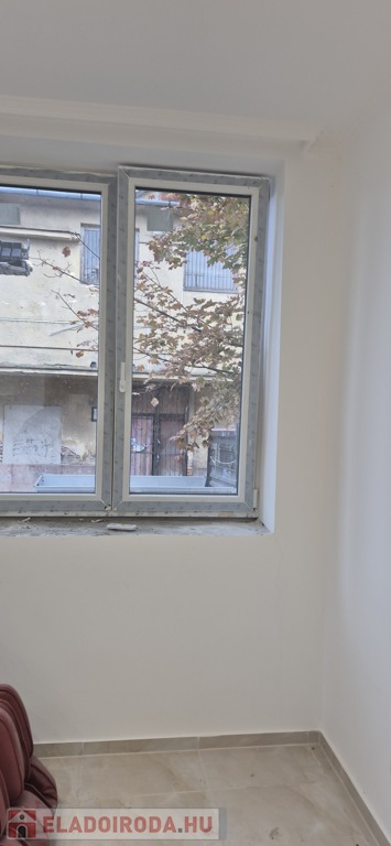 Melyen két oldalról ablakok, középen az üvegezett ajtó van.Ragyogóan napozott, szép kilátassal.Lépcsővel az utcáról.
