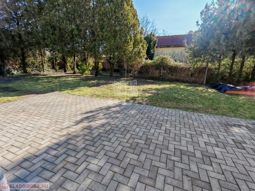 A ház egy 713 m²-es, rendezett, sík telken helyezkedik el, garázzsal és kb. 10 m²-es földes pincével.