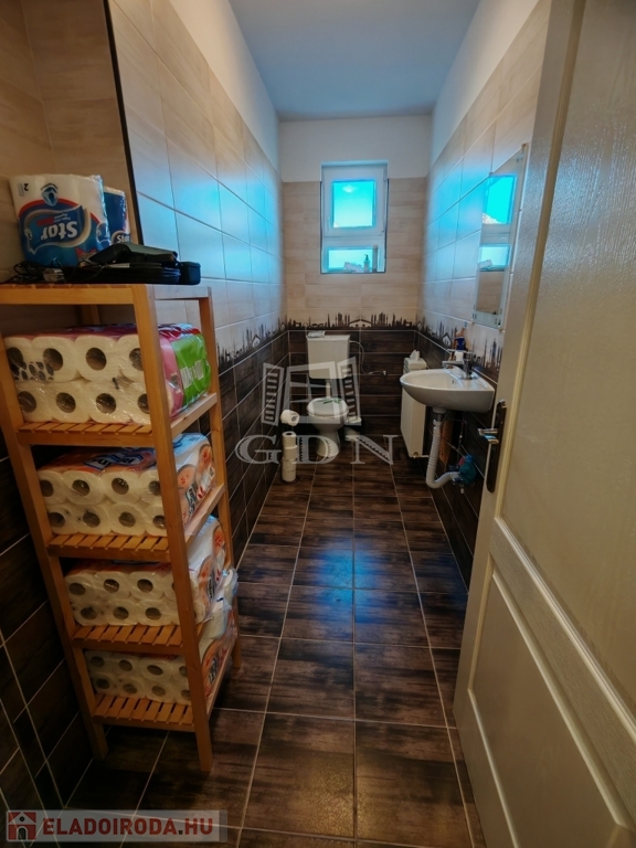 FÖLDSZINT – 4 szoba + konyha + kamra + óriási fürdő + wc , nagyon nagy előtér a vállalkozás miatt.