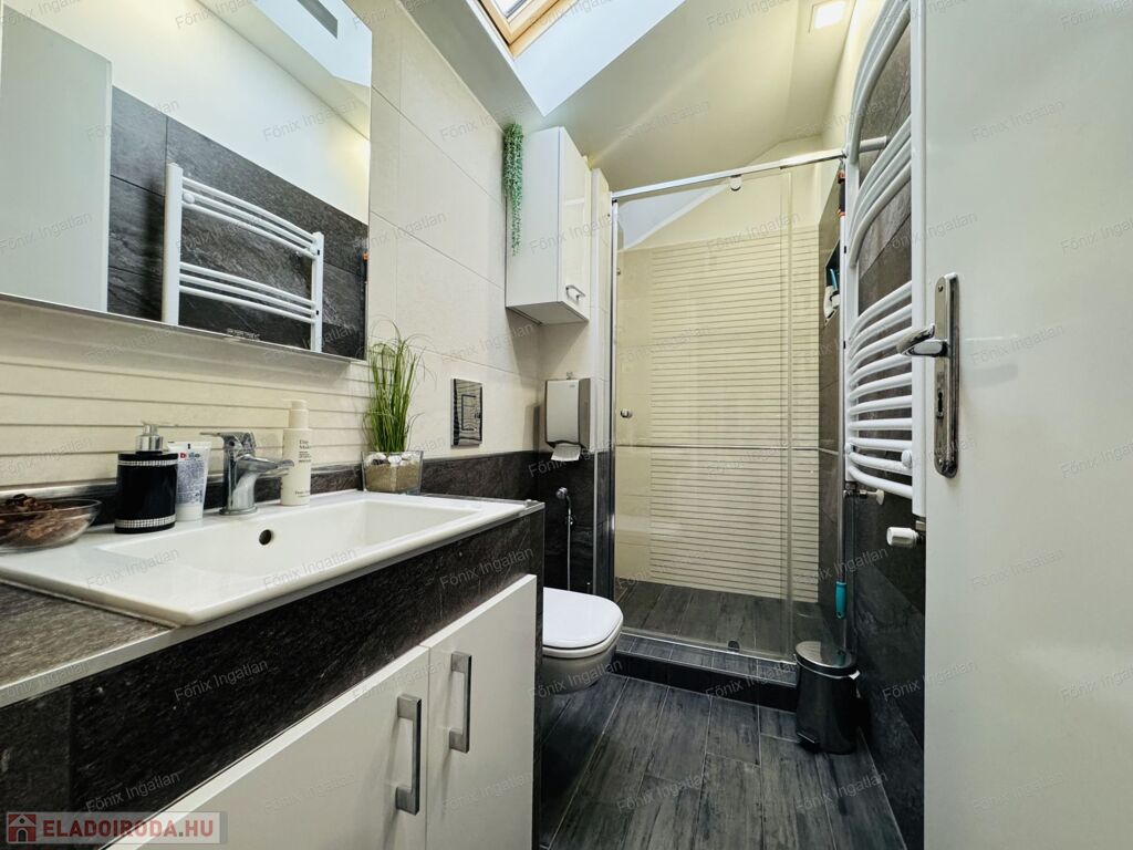 Emelet: A mai kor emberének igényeire formált, 95 m2 alapterületű, nappali –étkezőkonyha -2 hálószoba, fogadótér, 2 fürdőszoba és lodzsa elrendezésű lakórész és 14 m2 lépcsőház. Ez tovább alakítható 2 db 45 m2 –es másfélszobás garzonra.