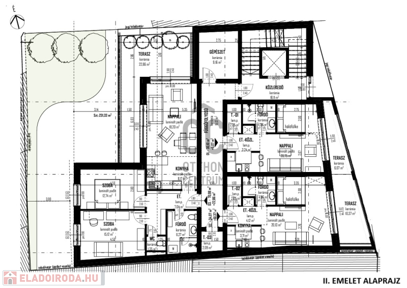 Földszinten 1 db üzlethelyiség és fedett/nyitott gépjárműtárolók (8MFt + ÁFA), melyek megvásárlása nem szükségszerű!