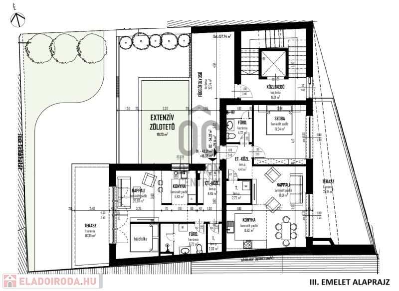 A III. emeleten 2 lakás, melyből az egyik garzon, míg a másik nappali + 1 hálós.