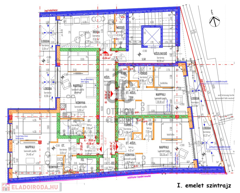 Az I. és II. emeletén 3 - 3 lakás, melyek garzon (nappali + hálófülke) és nappali + 2 hálós kialakításuak.