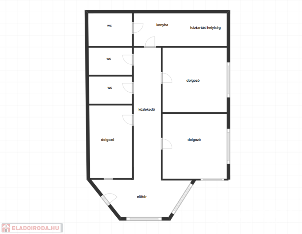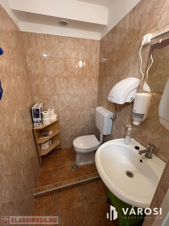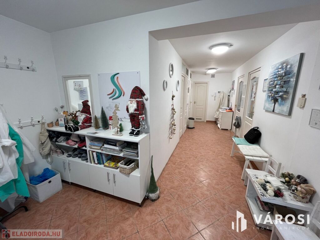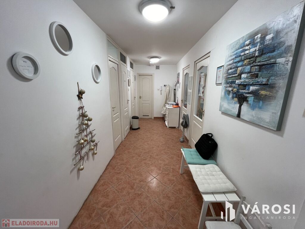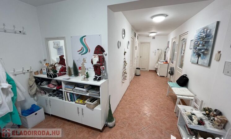 A helyiség praktikus elrendezéssel rendelkezik, három kezelőhelyiséggel, váróval, három mosdóval, teakonyhával minden igényt kielégít.