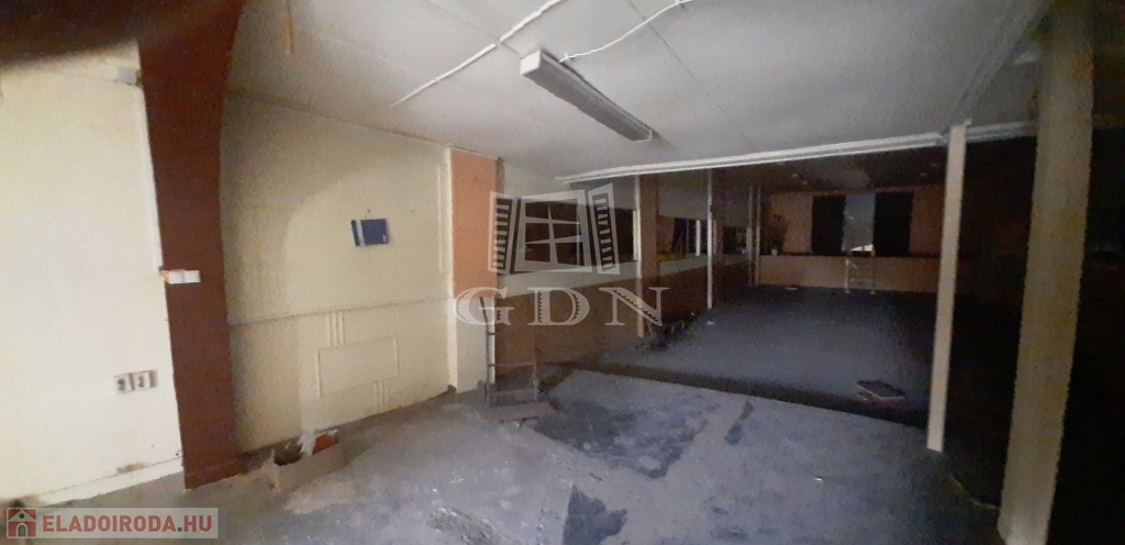 A helyiség érdekessége, hogy a földszinti 150 négyzetméteres eladó térből egy lépcsőn jutunk fel egy 50 négyzetméteres emeleti eladó tér.