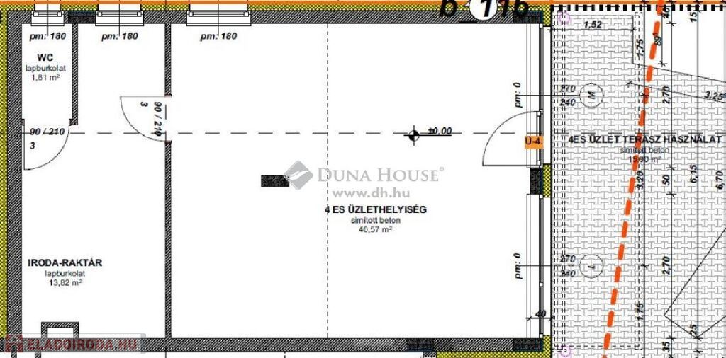Az üzlethelyiségek hatalmas utcafronti porállal rendelkeznek, térkövezett terasz tartozik mindegyikhez.