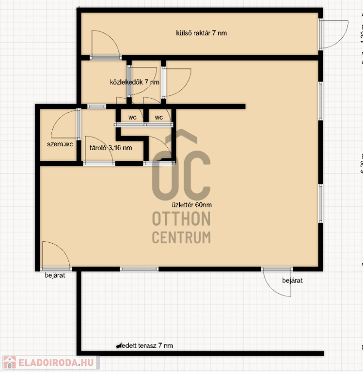 Jelenleg vendéglátó egységként üzemel, de igény esetén más tevékenységre is alkalmas lehet (bolt, rendelő, fodrászat stb…). Belső elrendezése lakhatás szempontjából könnyen alakítható, variálható!