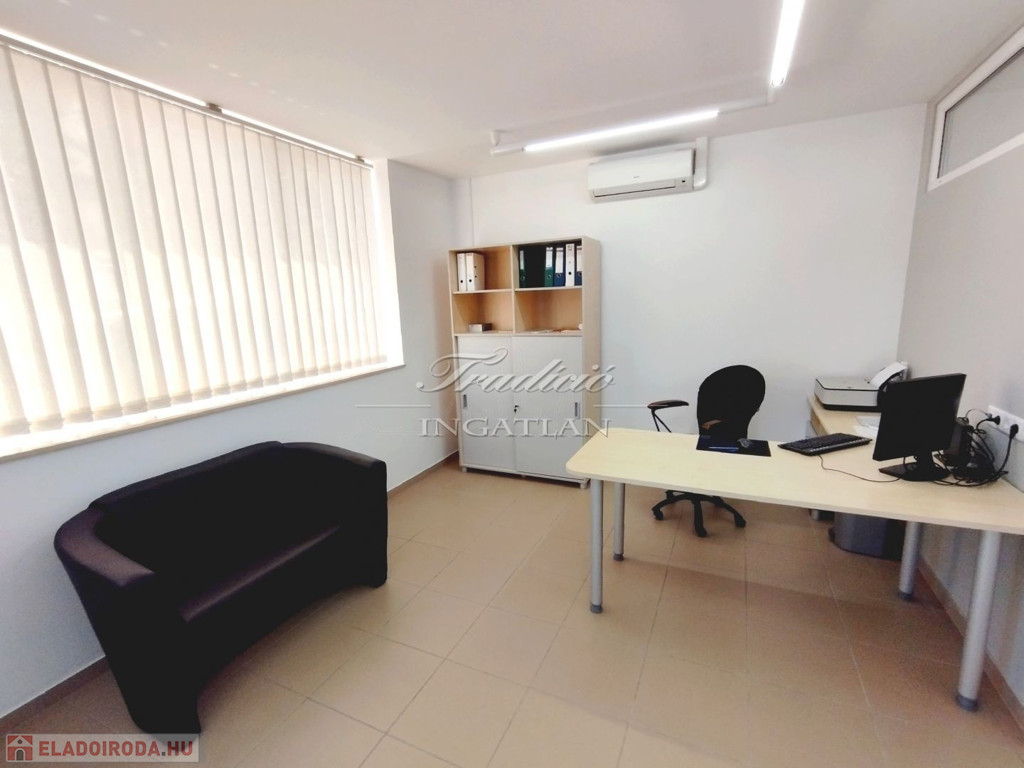 A 103,5 m2-es iroda elrendezése végett akár üzletnek, bemutatóteremnek is alkalmas lehet. A több helyiségből álló ingatlanban étkező-konyha, raktár, tárgyaló és vizesblokk is kialakításra került.