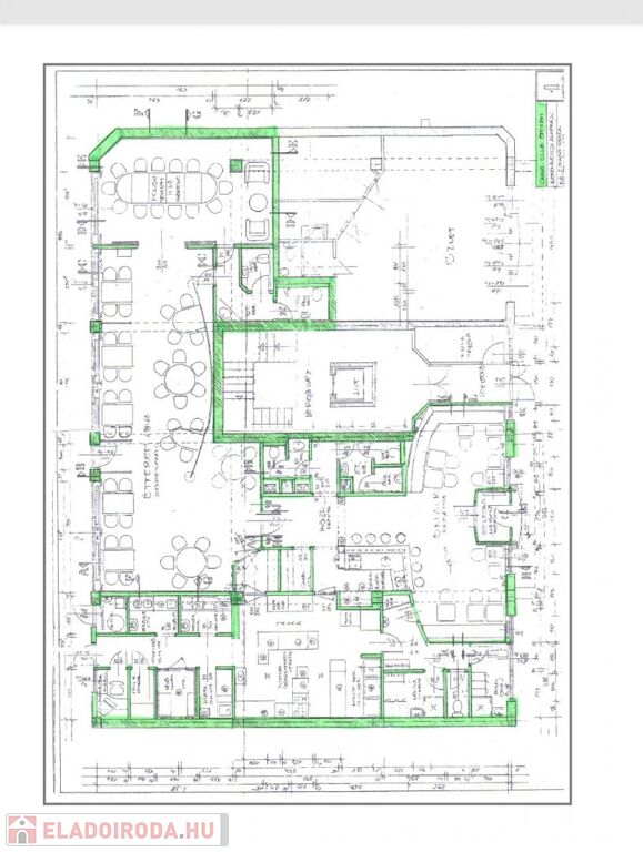 A belső kialakítás és elrendezés nagyon magas szinvonalú., kétoldali nagy üvegfelületekkel. Az eladó-kiszolgáló tér és konyha minden jogszabályi követelményeknek megfelel és fel van szerelve. Rendelkezik teljesen elszeparálható különteremmel ( szivarszobáva ), amihez külön vizesblokk is tartozik. Egyidőben akár 75 fő színvonalas kiszolgálása is lehetséges. Az étteremhez ( üzlethelységhez) tartozik 9 db zár udvari gépkocsibeálló is, ami egy távvezérléses kapu közelíthető meg.