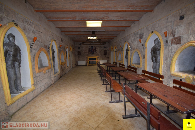 Különleges hangulatú, autentikus lovagterem: ódon páncélos szobrok, zászlók, fáklyák, trónszékek, kovácsoltvas csillárok – középkori miliő