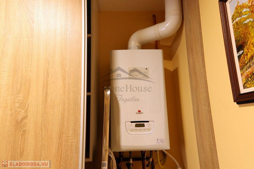 - Fűtés, meleg víz kondenzációs gázkazánnal történik, a hálószobákban radiátorral, a többi helyiségben padlófűtéssel