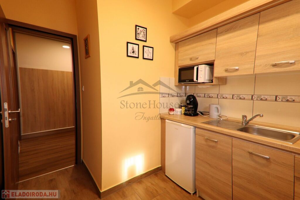 A konyha jelenleg az egyik fürdőszobában került kialakításra, de visszaállítható az eredeti állapot, mivel minden lefolyó és vezeték a helyén van. Akár ebből további irodai helyiség is kialakítható.