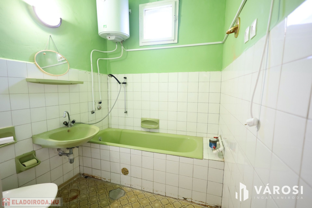 Gyula belvárosában, forgalmas, központi helyen eladóvá vált egy 48 nm alapterületű társasházi lakás, mely akár üzletként is kialakítható. Tökéletes az elhelyezkedése, hiszen a posta közvetlen szomszédságában található, melynek köszönhetően egy nagy méretű fizető parkoló található az ingatlan előtt. A ház tégla falazatú, beton sávalappal rendelkezik. A lakásban két szoba/eladó tér, egy konyha, kamra és fürdőszoba került kialakításra. A szomszédos ingatlanokhoz hasonlóan itt is lehetőség van a bejárat utcafrontra történő áthelyezésére. A lakás felújítandó állapotú, redőnyözött fa nyílászárókkal rendelkezik. A fűtésről gázkonvektorok gondoskodnak, a melegvíz villanybojlerről megoldott. Az ingatlan napfényes, alacsony rezsivel fenntartható. Elhelyezkedése tökéletes, hiszen a közelben számos üzlethelyiség, iroda, cukrászda is található, de a buszpályaudvar és a Várfürdő is 2 perc sétával elérhető. A társasházban 3 lakás van (melyből egy jelenleg papírboltként üzemel), mindhárom teljesen különálló, a kertrész közös használatban van. Ehhez a lakáshoz tartozik egy saját tároló és fedett szín is, melyek raktározási célra is használhatóak. Tökéletes elhelyezkedésének köszönhetően kitűnő választás befektetőknek, kezdő és rutinos vállalkozóknak egyaránt. Alakítsa át, kis fantáziával praktikus orvosi rendelő, üzlet vagy iroda is kialakítható belőle.