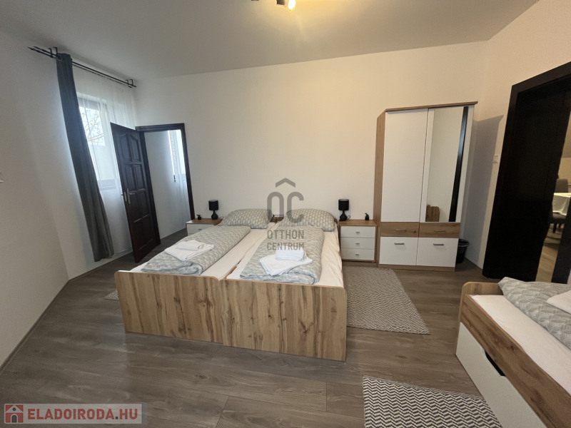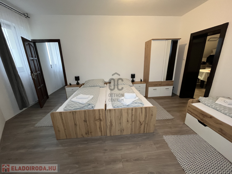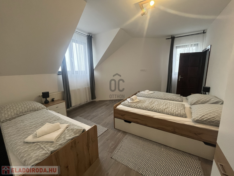Emelet: felújított, vendéglátásra alkalmas helyiségek, Nappali + 4 hálószoba, 2 fürdőszoba, amelyek tovább bővítik a hasznosítás lehetőségeit.