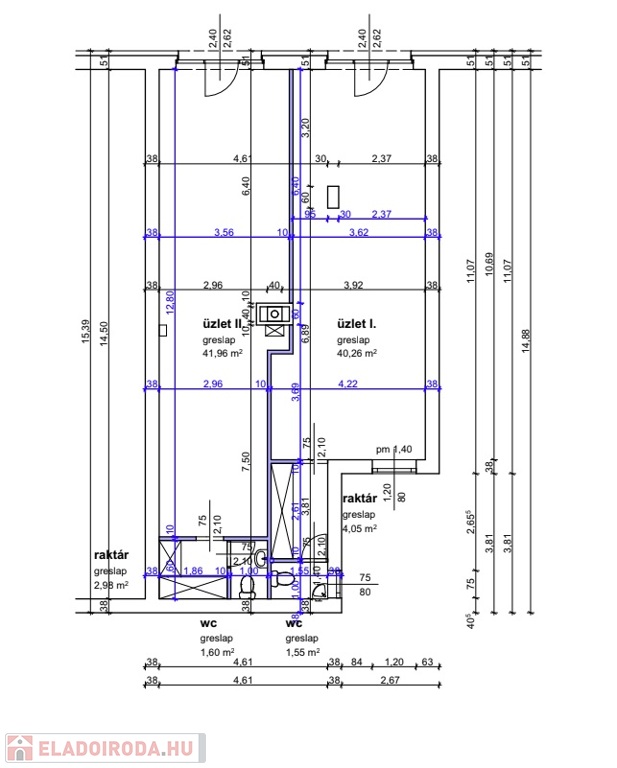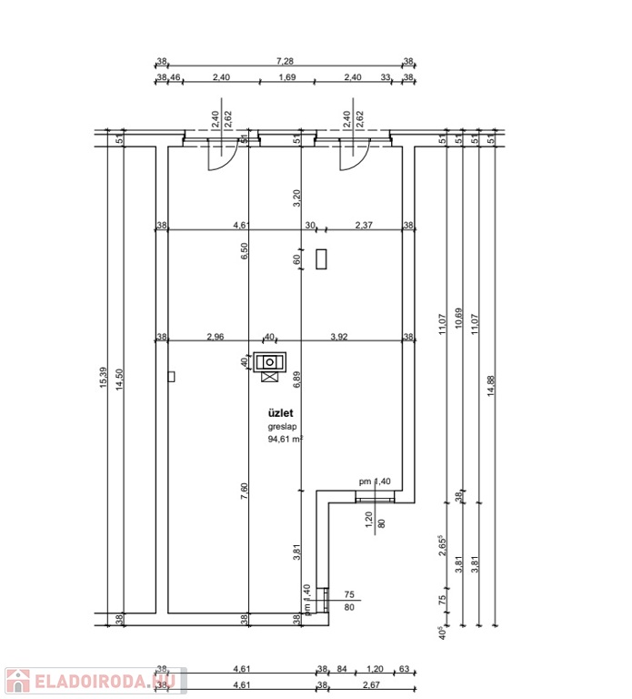 Közvetlen utca fronti dupla bejáratú, nagy kirakattal rendelkező üzlet.