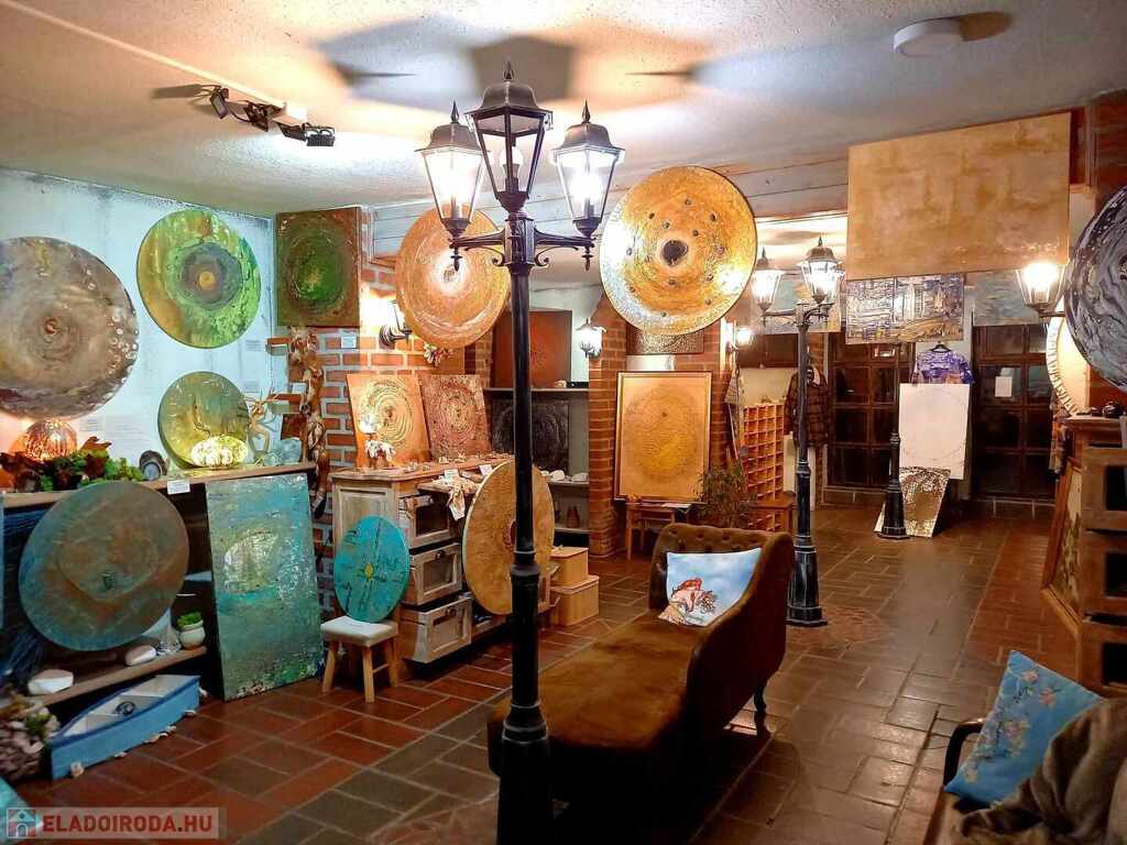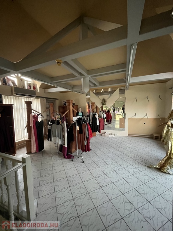 Az 1980-as években épült üzletháznak két bejárata van. A fűtést gázkazán, a meleg vizet átfolyós elektromos vízmelegítő biztosítja. A földszinten egyfázisú, az emeleten háromfázisú villanyóra található. Mind a földszinti, mind az emeleti rész tágas, a nagy ablakoknak köszönhetően pedig természetes fény világítja be a helyiségeket. A két szintet galéria köti össze.