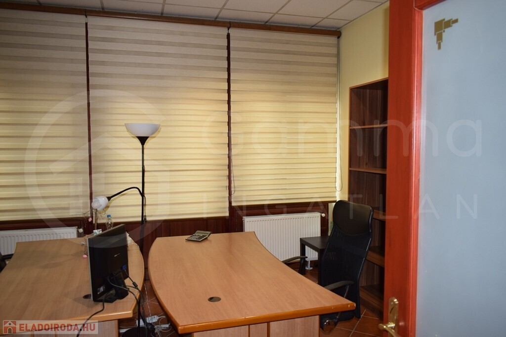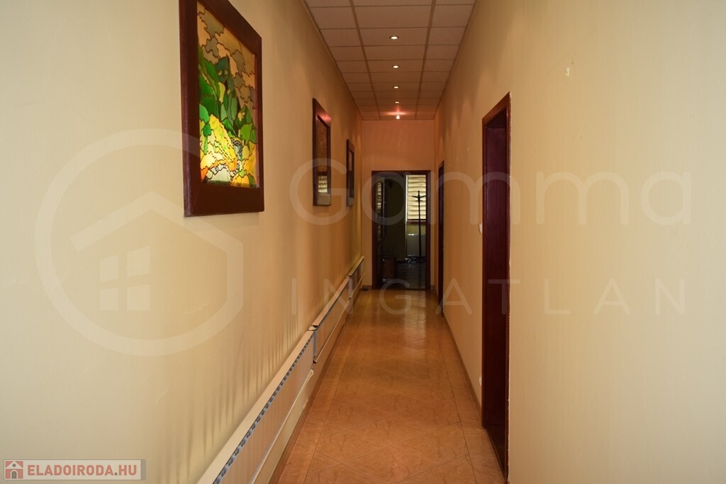 A Miskolc belvárosában elhelyezkedő, 220 m²-es, téglaépítésű irodaház egy tágas, 866 m²-es telken fekszik, amely kiváló lehetőséget nyújt a jövőbeli bővítésre. Az egyedi, eltolt szintes belső tér egy 160 m²-es földszinti részből és egy 60 m²-es emeleti szintből áll, ahol előtér, hat irodahelyiség, mosdó és WC került kialakításra. Az épület fűtését gázkazán biztosítja radiátoros hőleadókkal. A falak festettek, a padlózat járólappal burkolt. A nyílászárók fa tokozású hőszigeteltek.