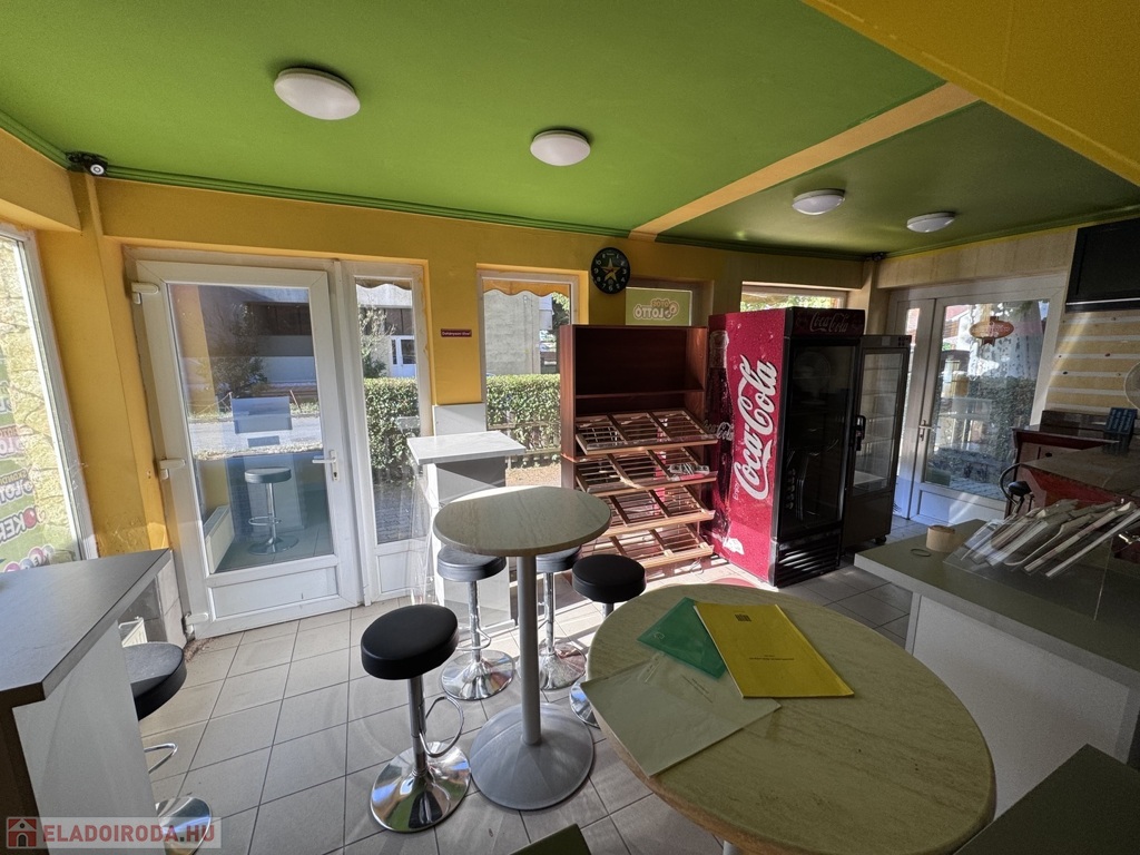 Korábban pékségként, presszóként és lottózóként üzemelt, 1,5 éve zárt be. Az üzlethelyiség azonnal használatba vehető, a teljes berendezés – pult, kávégép, hűtők, bútorok – a vételár részét képezik.