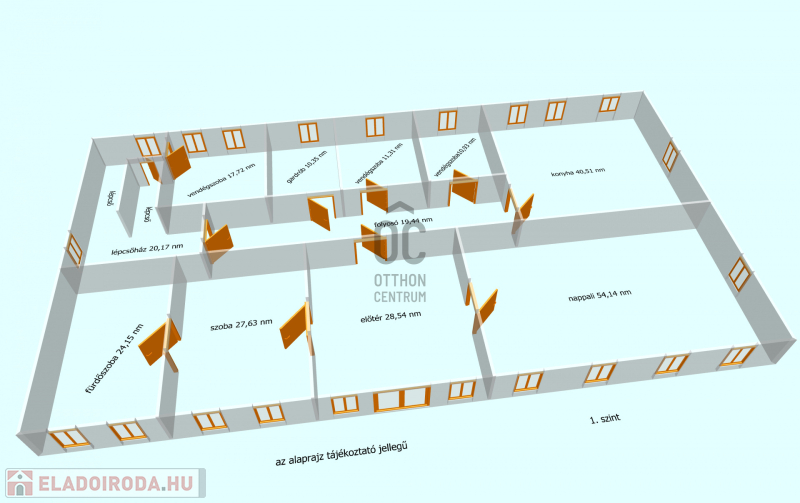 A földszinten - hatalmas fogadóhelyiségen kívül - találunk 6 szobát és 2 fürdőszobát, és 1 konyhát. Az emeleten továbbá 1szoba áll rendelkezésre.Tervek szerint 16 szoba alakítható ki.