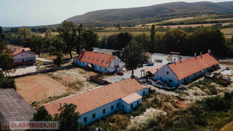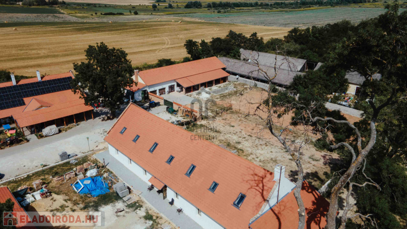 Tartozik még az igazán egyedi birtokhoz egy 230nm-es ház is,melyben 2 garázs, konyha-nappalival egybekötve és 3 szoba is, melyekhez saját fürdőszoba tartozik. A aszobákat és a nappalit is meg lehet közelíteni a közlekedőből, vagy a tornácos teraszról is. A teraszon egy kis külső pult, nyári konyha is fellelhető. Az udvaron teniszpálya és medence is kialakításra került. Ezen ingatlan fűtése szintén hőszivattyúval megoldott.