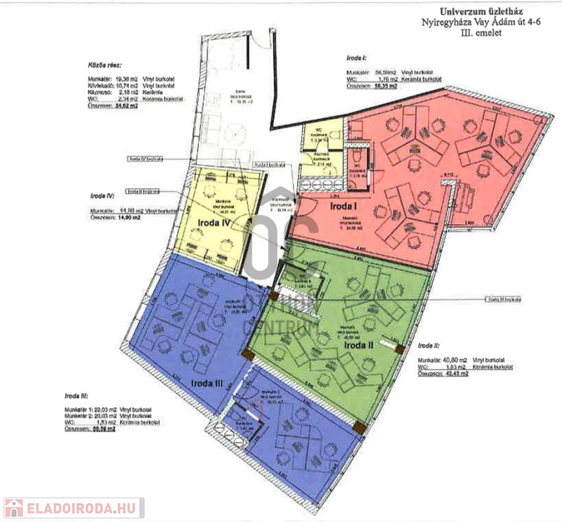 Munkatér mérete: 29 m² – tágas, világos, jól bútorozható
