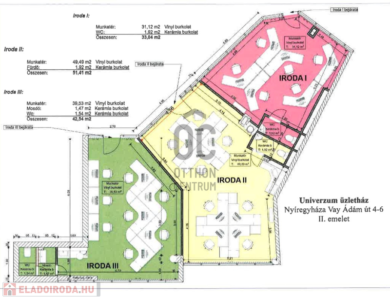Munkatér mérete: 36,3 m² – tágas, világos, jól bútorozható